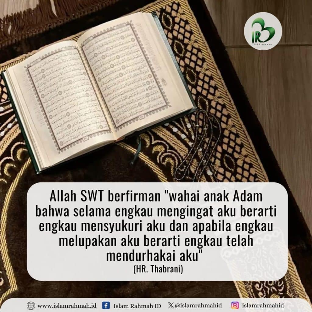 “Wahai anak Adam, selama engkau mengingat-Ku, berarti engkau mensyukuri-Ku; dan apabila engkau melupakan-Ku, berarti engkau telah mendurhakai-Ku.”